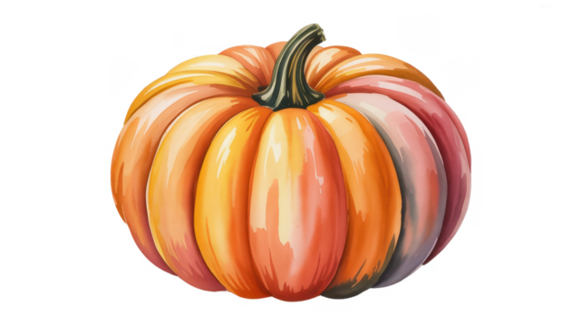 Watercolor pumpkin illustration hand-drawn vegetable isolated on white background for autumn harvest designs and seasonal decorations