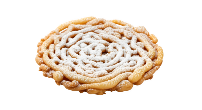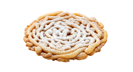 Delicious funnel cake isolated on transparent background, a classic carnival treat, is dusted with powdered sugar and ready to be enjoyed at the fair