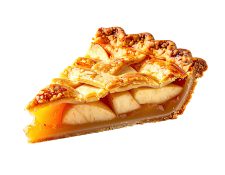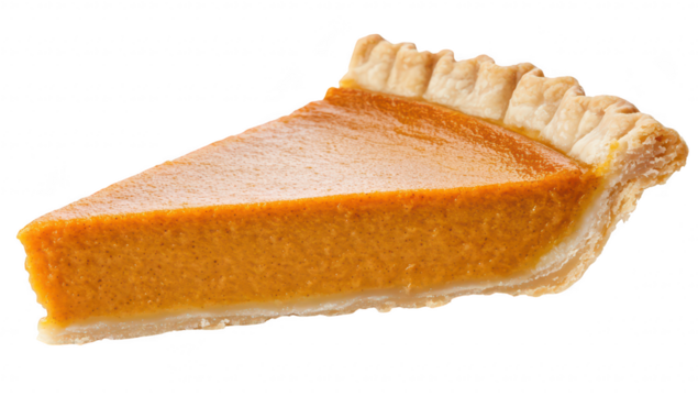 A delicious slice of pumpkin pie with a golden-brown crust. its smooth. rich filling. perfect for autumn celebrations and holiday gatherings. with a clean white background emphasizing its appeal