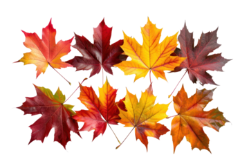 Autumn leaves with brilliant seasonal colors display a vibrant fall palette against a clean transparent background, showcasing rich tones and delicate details.