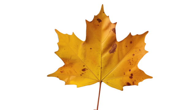 Single dried brown maple leaf with pointed lobes and visible veins, curled edges on white background, symbolizing autumn, change, and natural simplicity.