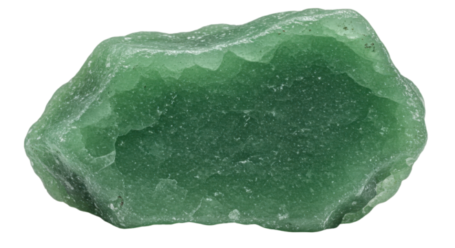 Green aventurine quartz stone isolated on transparent background, showcasing its rough surface and vibrant color