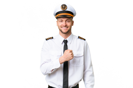 Cheerful air hostess giving thumbs up in uniform transparent background