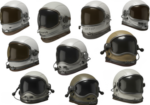 Isolated Background Collection of Vintage Helmets Headgear Protective Wearable