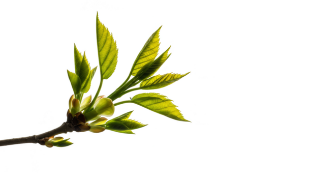 Realistic photo of a spring branch with green leaves