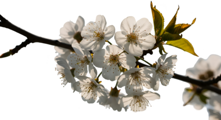 Isolated Realistic White Cherry Blossoms Branch Spring Sunlight