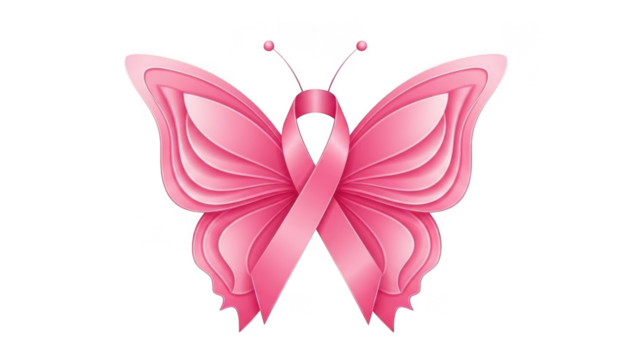 Pink breast cancer awareness ribbon representing solidarity, floating against transparent backdrop