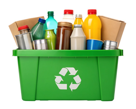 Colorful recycling bin with transparent background ready for sustainable waste management in urban settings