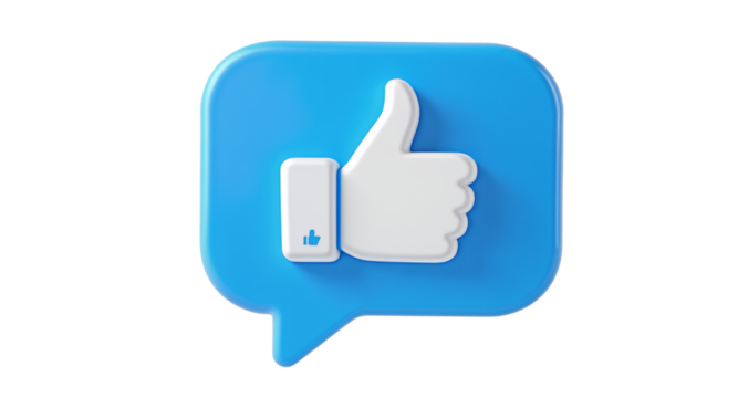 3D Thumbs Up in Blue Speech Bubble Positive Feedback Social Media Icon