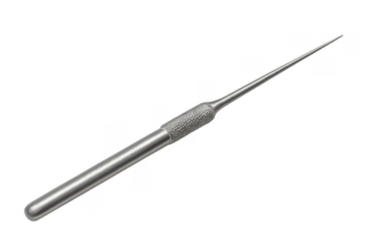 This is a 3D rendering of a metal awl with a sharp point and a long, thin shaft.