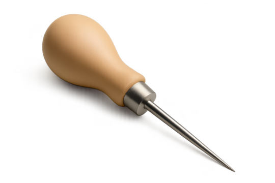 Closeup of a leather awl isolated on transparent background, a tool used for piercing holes in leather for sewing purposes