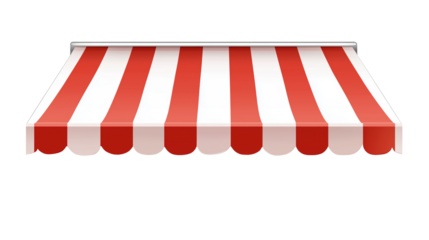 Red and white striped awning for storefront shop or business perfect for summer design projects and branding