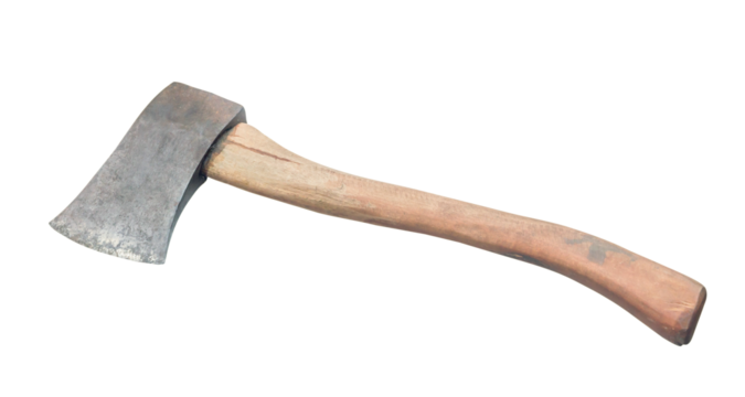 Isolated axe with a wooden handle for chopping wood for campfire or outdoors activities