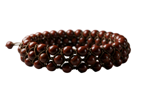 茶色のビーズブレスレットのクローズアップ透明背景に分離された宝飾品の装飾