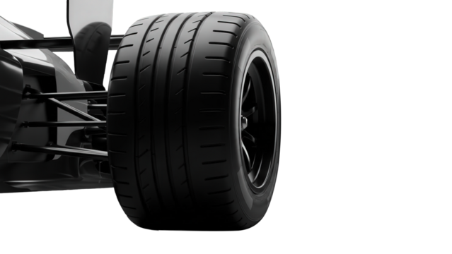 This dramatic, low-angle shot of a high-performance racing tire highlights the intensity of winter sport competition.