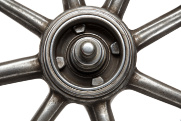 Metal axle tubes with cog-wheel, horizontal. On isolated transparent background.