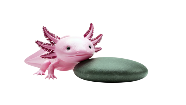 3d Cute pink axolotl with feathery gills isolated on transparent background