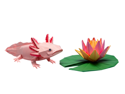 Isolated pink axolotl, an aquatic salamander, amphibian native to Mexico, animal wildlife