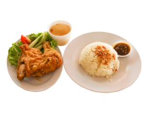 Egg laying hen with freshly laid eggs in the foreground on transparent background
