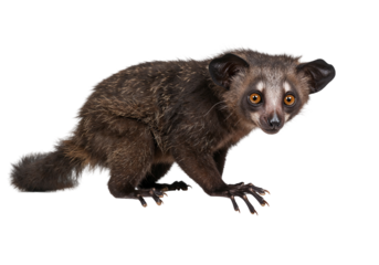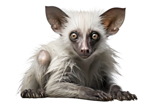 Ayeaye lemur sitting on a branch isolated on transparent background