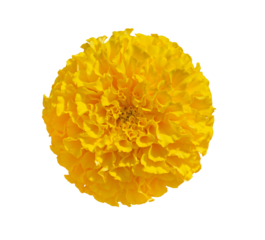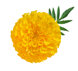 Beautiful Yellow Marigold flower isolated on transparent background. Indian flowers for traditional functions pongal, diwali, marriage, ayudha pooja.