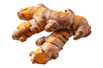 Ashwagandha dry roots for medical herb with fresh vibrant green leaves isolated on white background. Suitable for marketing or business purposes. PNG file