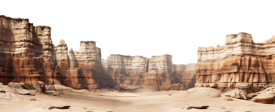 Sandstone cliffs and desert landscape isolated on a transparent background