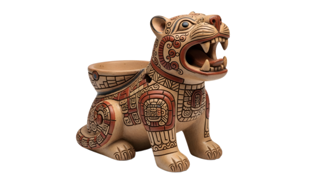 Ancient Aztec artifact featuring intricate carvings and prominent face, showcasing rich cultural heritage and artistry of civilization. This mysterious piece evokes sense of history and wonder