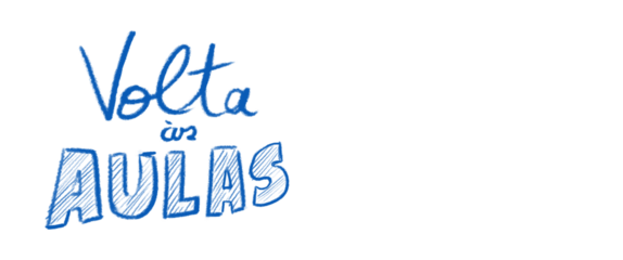 Texto de Volta às Aulas, azul e branco, em fundo transparente sem fundo