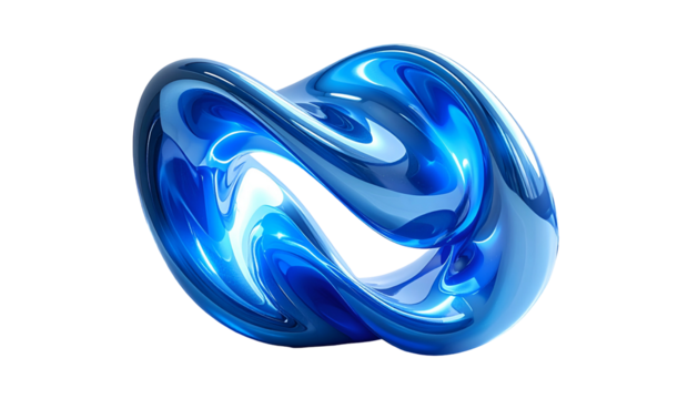 Blue glossy 3D rendering of wavy, layered form