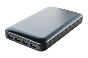 Sleek portable power bank with multiple U S B ports isolated on a transparent background