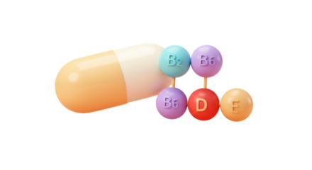 Isolated 3D Vitamin Capsule with B2, B6, D and E Letters