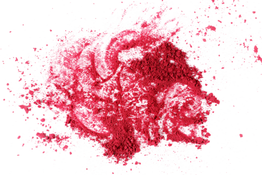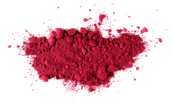 Dried beet root powder in wooden spoon isolated on white background, top view