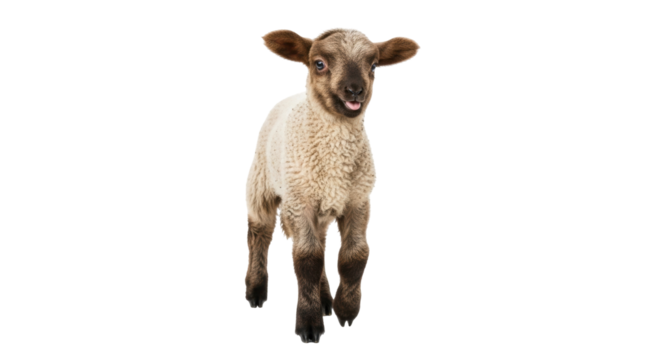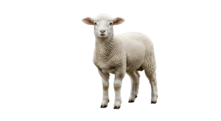 A fluffy white lamb bleats sweetly under the quiet moonlight calling for its mother with soft on transparent background