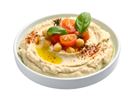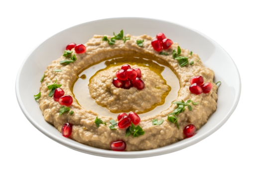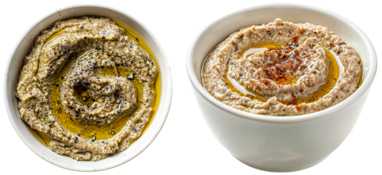 Delicious baba ghanoush isolated on transparent background, a creamy middle eastern dip made from eggplant, tahini, lemon juice, and olive oil