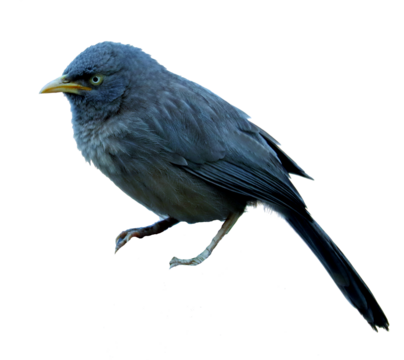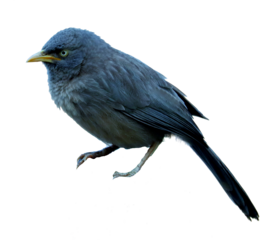 Babbler Bird in mid-flight showcasing detailed feathers and a dynamic pose against a pure white background cutout