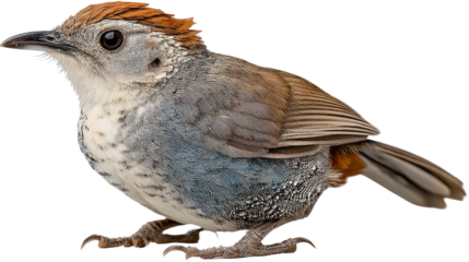 Rufous-capped Babbler with intricate feather details, avian wildlife, cut out transparent