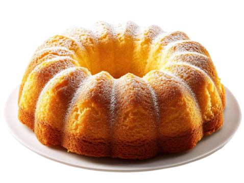 Plain Bundt cake on transparent background