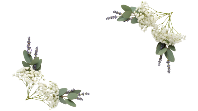 Delicate hand painted watercolor corner border with peonies and baby's breath in pastel blue and lavender isolated on white background.png