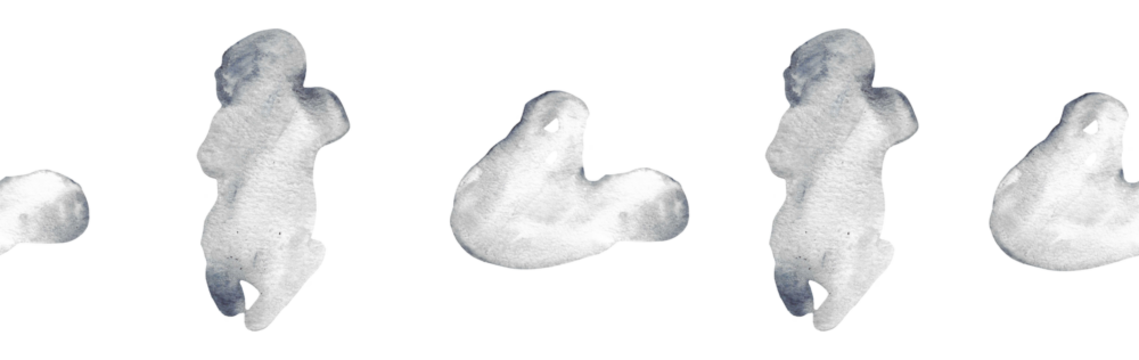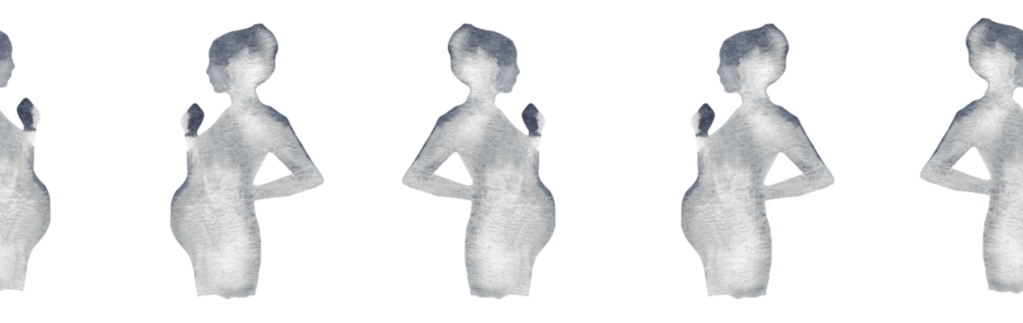 Watercolor pregnant girl silhouette blue pattern.Hand painted silhouette motherhood element border on white background.