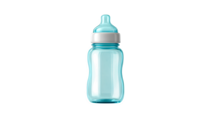 Empty Baby Bottle with Blue Cap Isolated on White Background – Infant Feeding Container and Parenting Concept