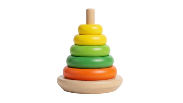 Isolated wooden stacking ring toy, preschool educational game for motor skill development