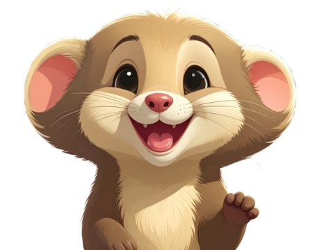 Happy Ferret Emoji with Big Smile, Cartoon Style, isolated transparent background png