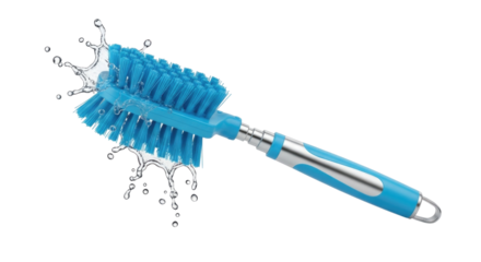 Blue bottle brush with milk splash transparent background cutout png