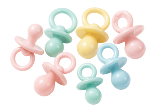 Plastic pacifier charms in assorted pastel colors