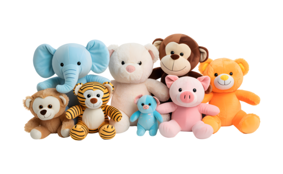 Cute stuffed animal toys collection isolated on transparent background for kids and gift concept