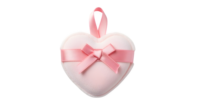 Powder puff in heart shape with ribbon holder, isolated on white background