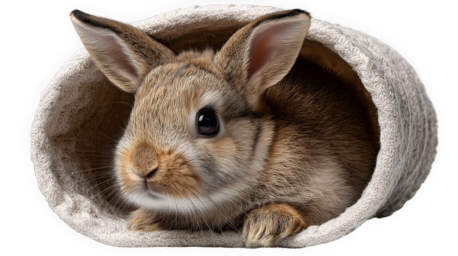 An incredibly cute brown bunny, isolated on a transparent white background. Perfect for children's designs, pet themes, and springtime visuals.