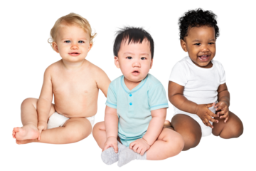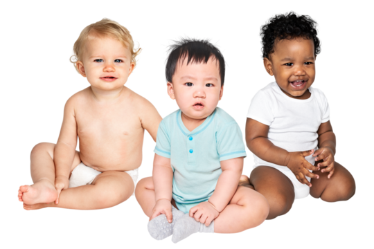 Portrait studio of young adorable baby with happy smile isolated on transparent background.