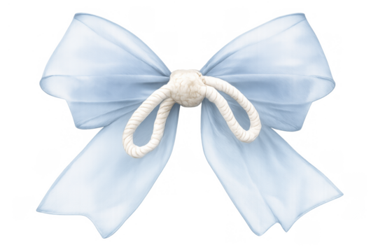 Blue bow tie decoration with an elegant white rope knot, representing gift, celebration, wedding, and baby shower concepts on transparent background